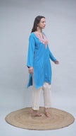 Cerulean Blue Kashmiri Woolen Pheran with Copper Boti Tilla Embroidery